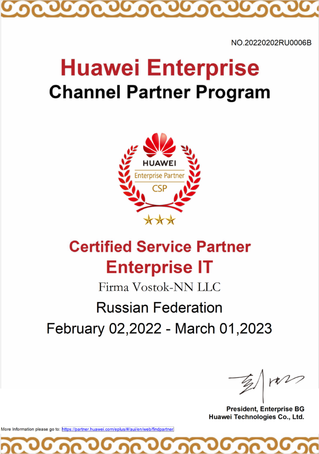 Восток-НН получил статус Huawei Certified Service Partner Enterprise IT 3-Star.